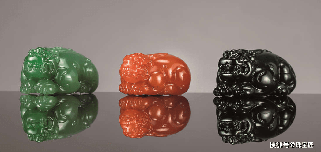 戴国庆 南红玛瑙、碧玉、青玉貔貅一组