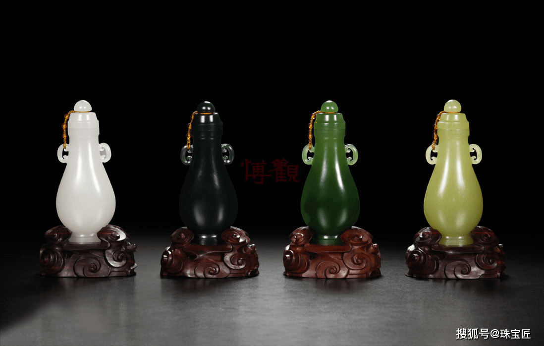 黄玉、碧玉、青玉、白玉四季平安套瓶 | 图源:博观拍卖