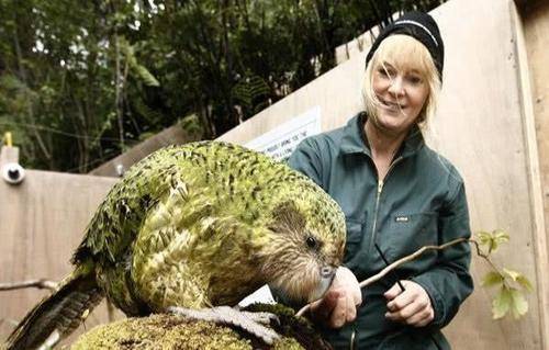 新西兰就有这样一种鹦鹉,又肥又笨,不会飞不说好奇心还特别得强烈,见到人竟然还会凑上去瞧瞧,当发现危险时甚至会双腿发软直接躺地上,这并不是碰瓷,而是它真得不会逃命。
