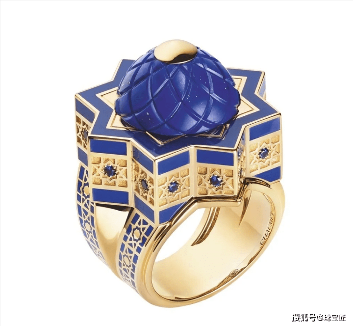气势恢宏的紫禁城、奢华霸气的巴黎大皇宫、独具风情的伊斯兰建筑......珠宝设计师一改犹太婚戒不镶嵌宝石的传统,将各色彩宝与黄金相结合,呈现出一种独具特色的古典美。