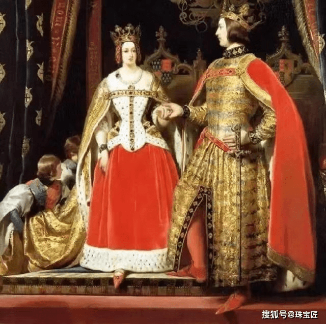 在这一时期的贵族身上,还常常能够看到镶嵌各色彩宝、款式奢华的礼服、手套、鞋子等,他们以此来凸显家族的财力。