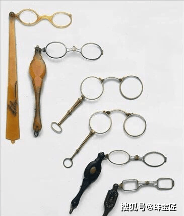珠宝式长柄眼镜,英文为“lorgnette”,源自法语中的“lorgner”,有窥探、斜视之意,由英国人乔治·亚当斯发明。
