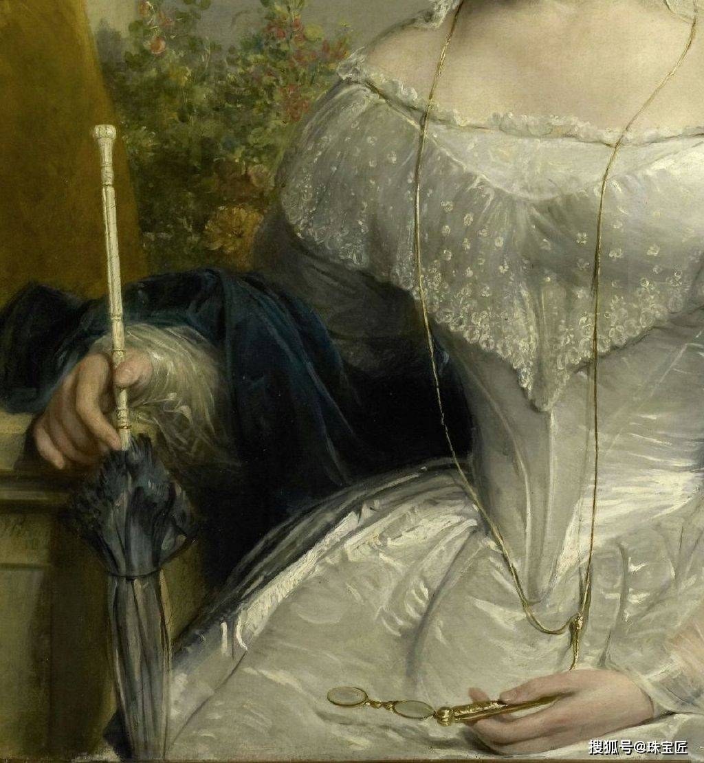 折叠后的lorgnette,既可以作为项链佩戴于颈上,也可以作为胸针点缀于胸前,或是作为腰挂的一部分挂于腰上,lorgnette成为了淑女们用来装扮自己的绝佳配饰。