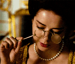 剧中凯瑟琳大帝在阅读公文时,手持单柄眼镜的造型,十分优雅,令人印象深刻。