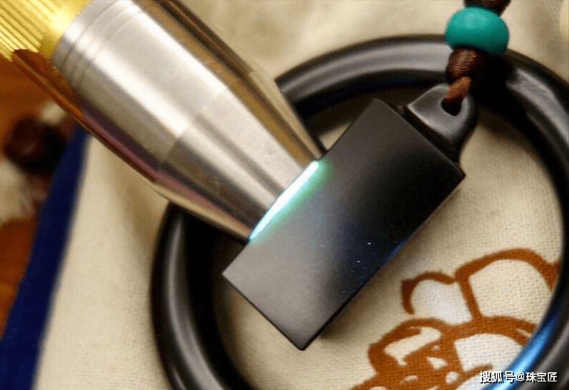 这两大类和田玉的特点是:不打光的时候看起来是黑色,打了光就能看到青色/绿色。