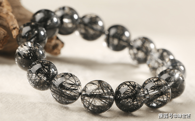 黑发晶是一种含有黑色针状碧玺包体的水晶,其黑色不是水晶本身的颜色,而是内部碧玺发丝状包体的颜色。