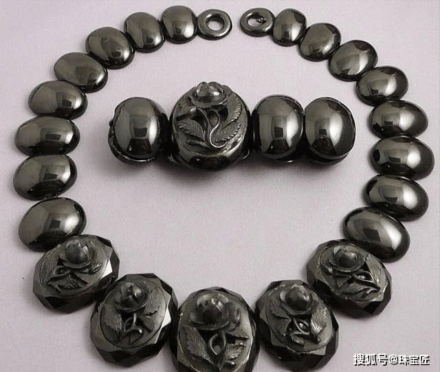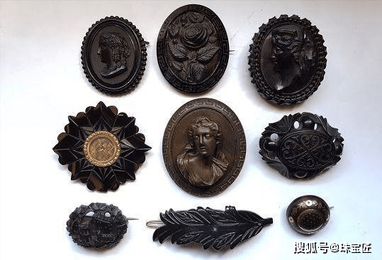 煤精在国外用于珠宝装饰已有悠久的历史,比较著名的就是19世纪欧洲维多利亚时期的哀悼珠宝。