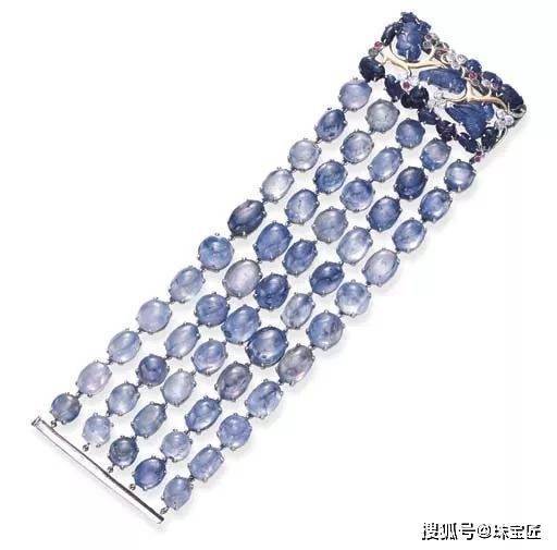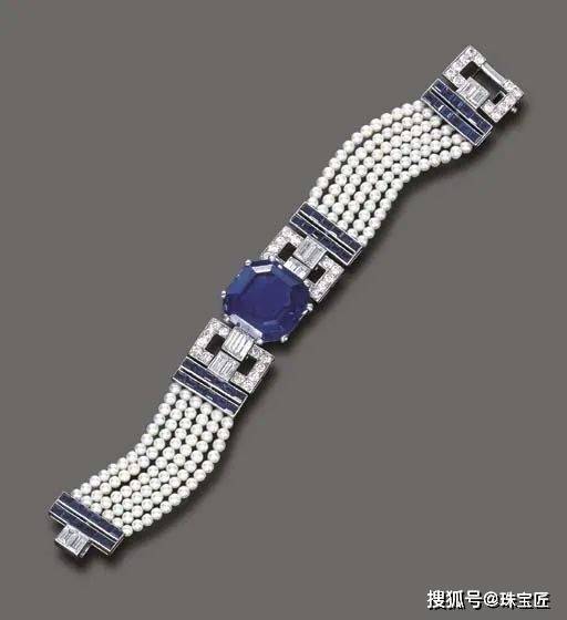 比如,下面这条镶嵌有35.54克拉的蓝宝石珍珠手镯,蓝宝石与珍珠的完美结合,优雅中带有一丝高贵;