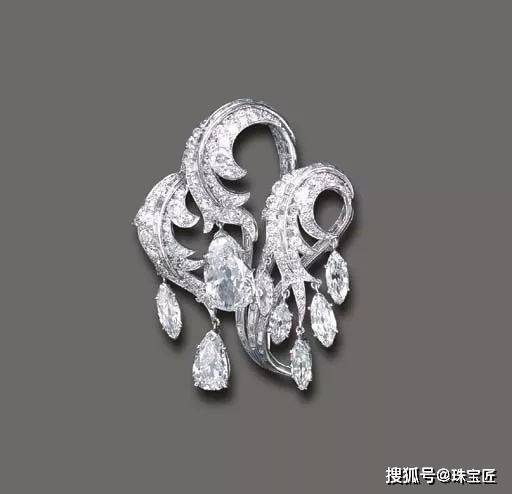 这款钻石胸针,是美国著名珠宝设计师David Webb的设计,胸针轮廓为铂金材质,外端镶嵌的钻石,会随着佩戴者的走动摇曳闪耀。