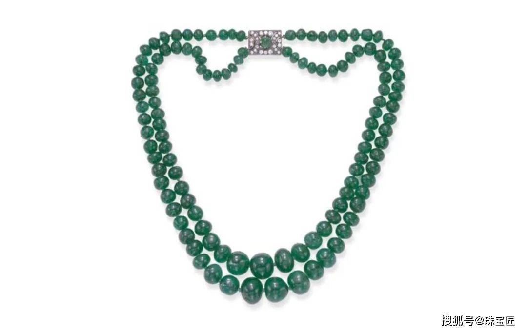 下面这条双股的祖母绿项链,绝对是当时难得一见的珍藏品。