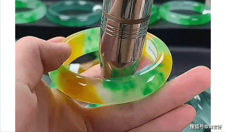 如下图这打灯手法堪称一绝,手电压根没对准镯子,能照出什么来呢?