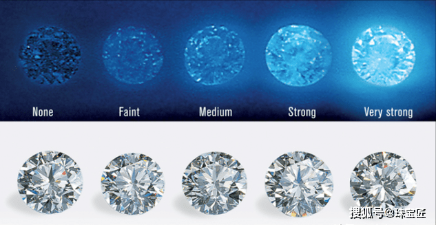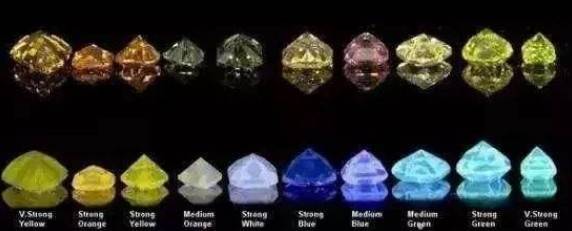 在之前的文章《钻石有荧光究竟会便宜多少?掰开揉碎算给你听》中我们提到过:钻石的荧光强度变化非常大,可以从无到强,也可呈现各种各样的荧光颜色。此外,钻石的荧光对钻石价值也有一定影响。