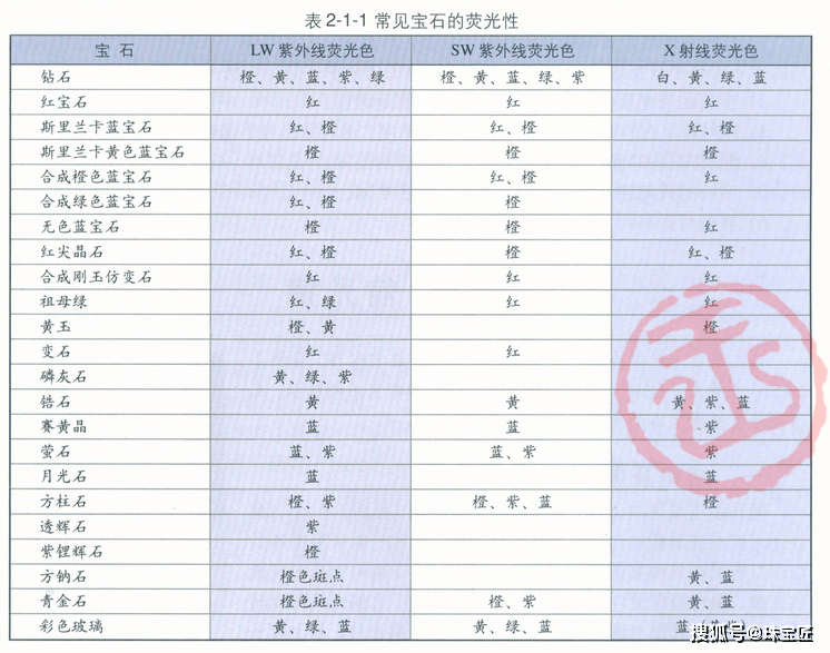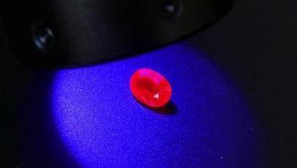 虽然人工合成宝石技术日渐发达,但天然宝石与合成宝石在紫外荧光灯下的反应还是有区别和差异的。这些蛛丝马迹都是辅助鉴别某些天然宝石和合成宝石的有效证据。
