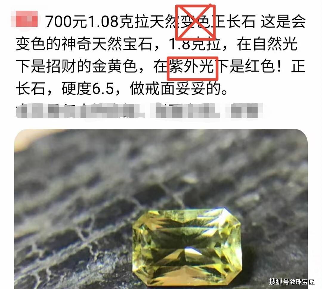 比如拿着紫外灯照金绿宝石,说变色了,这就是知名的亚历山大变石,又或者拿别的宝石在紫外灯下的荧光色说是变色宝石。