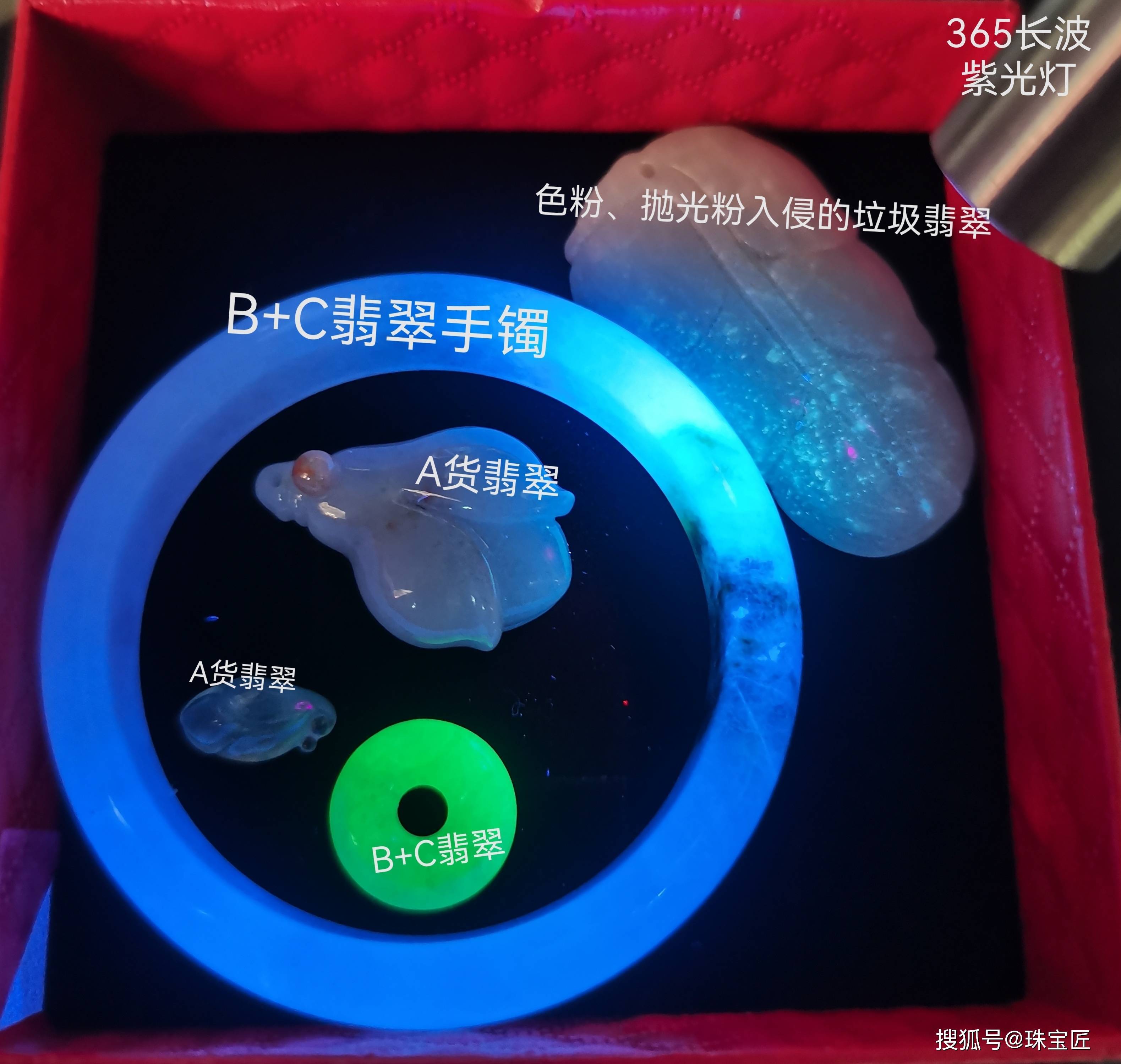 有的主播十分“机智”,把b货翡翠放在白绒布上,在直播间亮光下打灯,表示没有荧光反应,是天然翡翠。不懂紫外灯使用方法的萌新们听信了,就破财了。