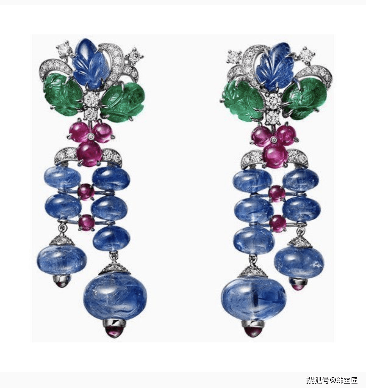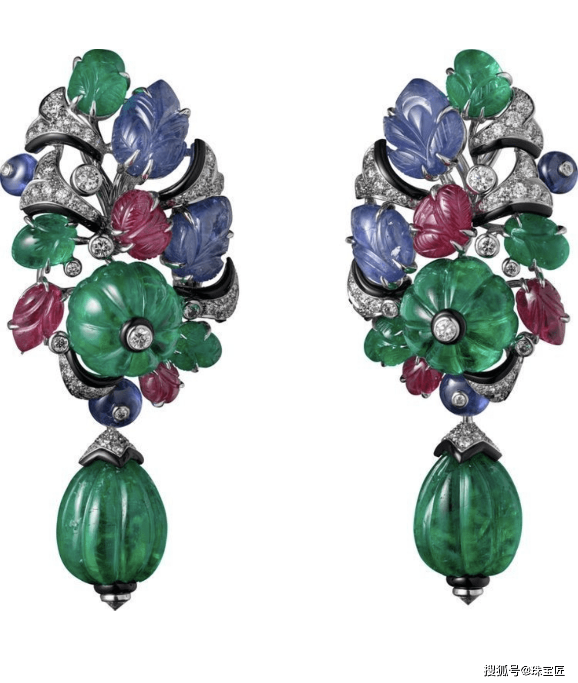 自从20世纪初,卡地亚的掌门人雅克卡地亚与印度大君们建立了良好的关系,打造出了独具卡地亚特色的水果锦囊(Tutti Frutti)珠宝后,卡地亚开挂了一般,将装饰艺术和桃红柳绿的缤纷宝石玩转得得心应手,在一众珠宝大牌中一骑绝尘。