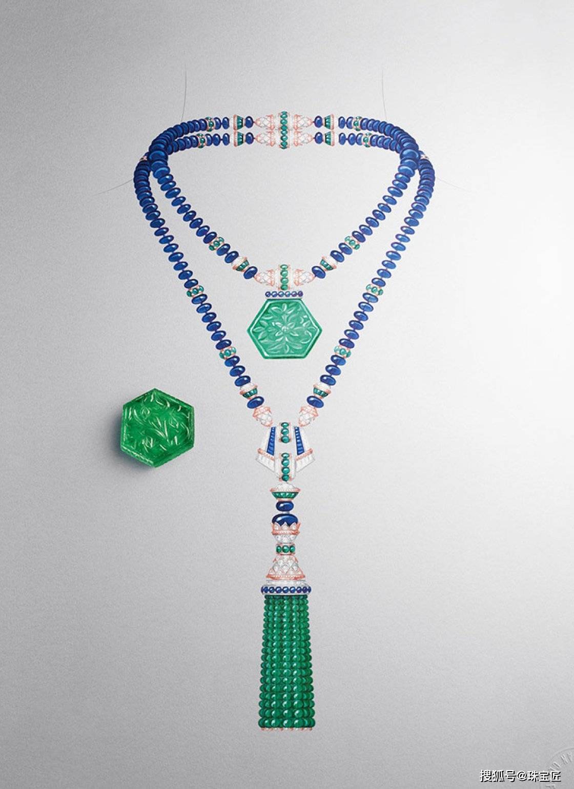 ![]() 雕花祖母绿项链,by Van Cleef & Arpels