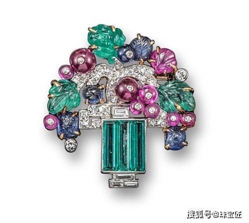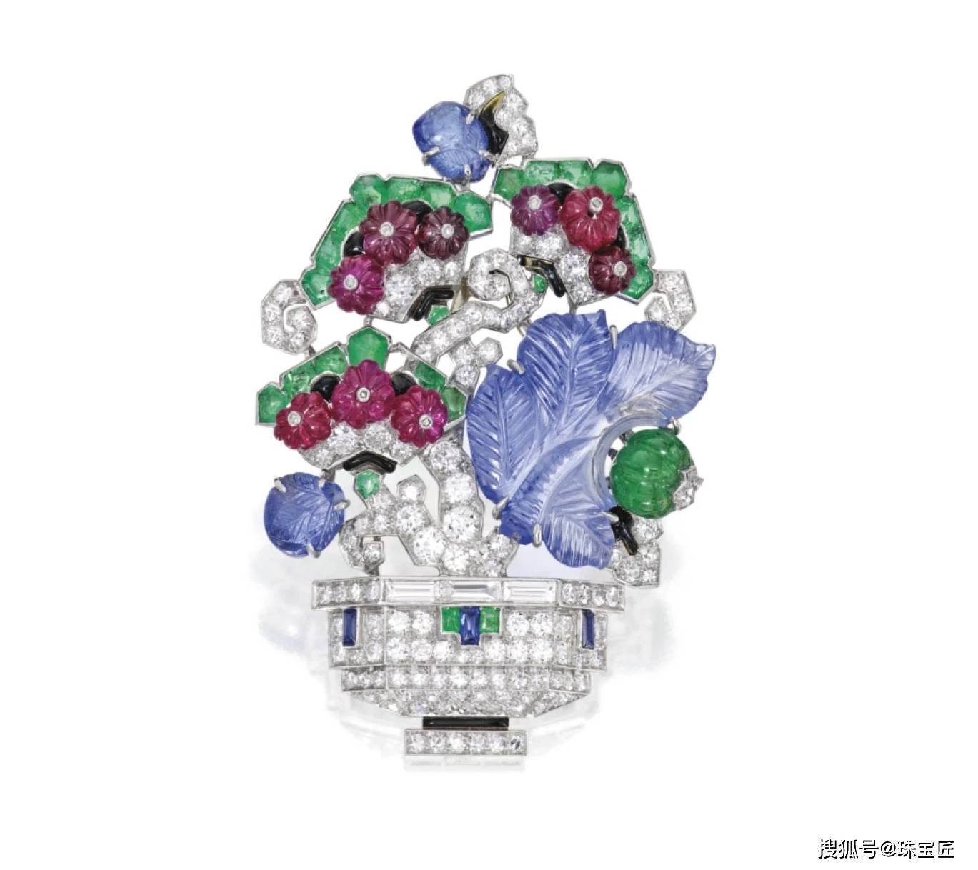 ![]() 雕花宝石胸针,by Mauboussin | 图源:苏富比