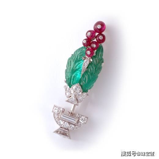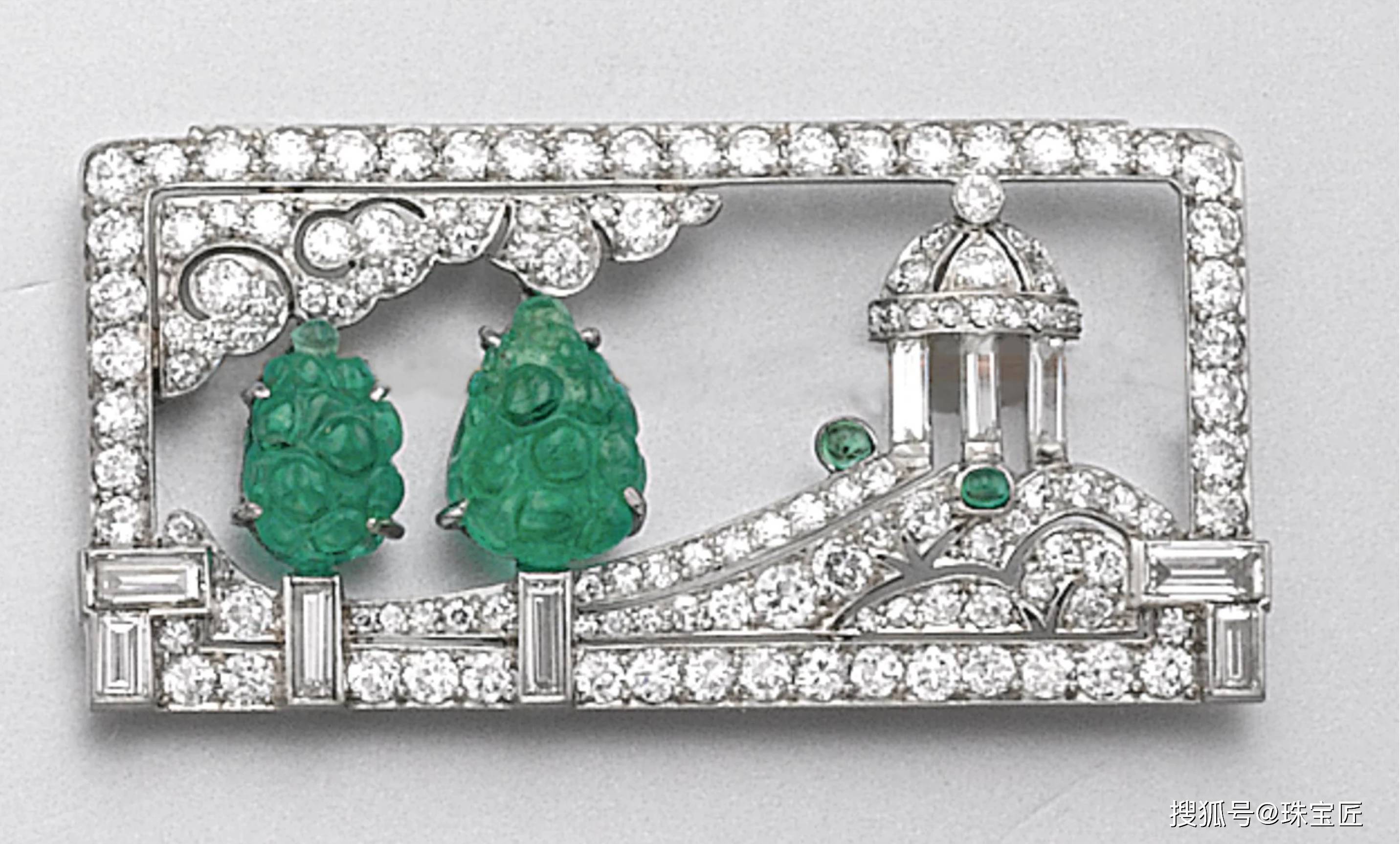 ![]() 雕花祖母绿胸针,1930s,by CARTIER