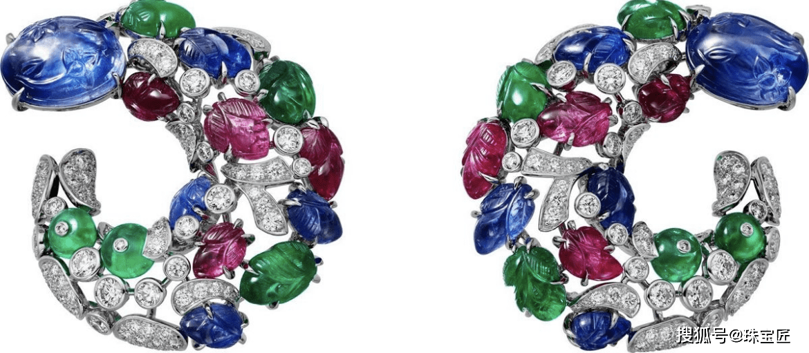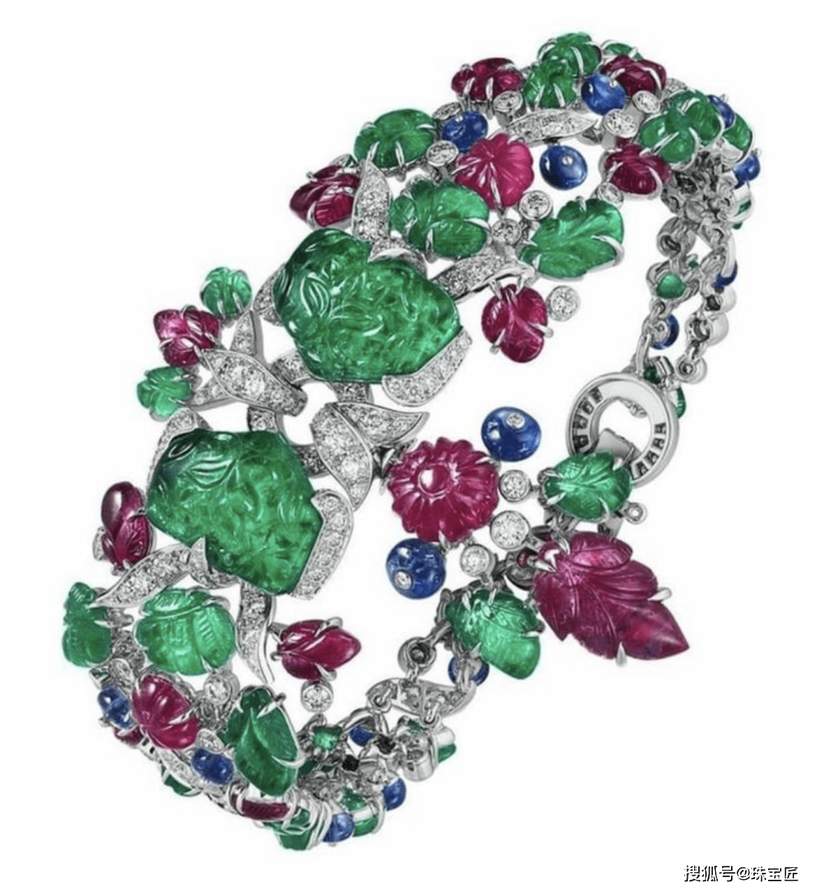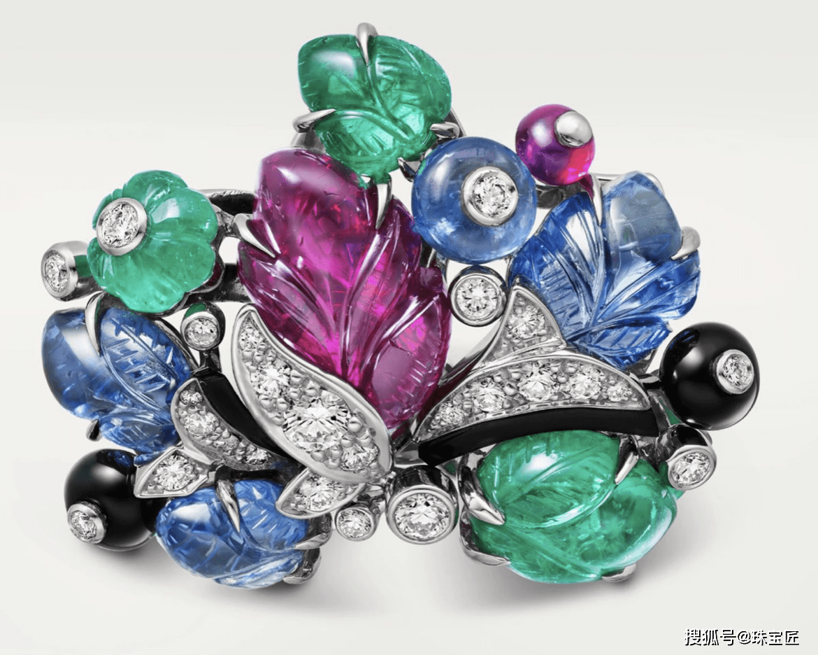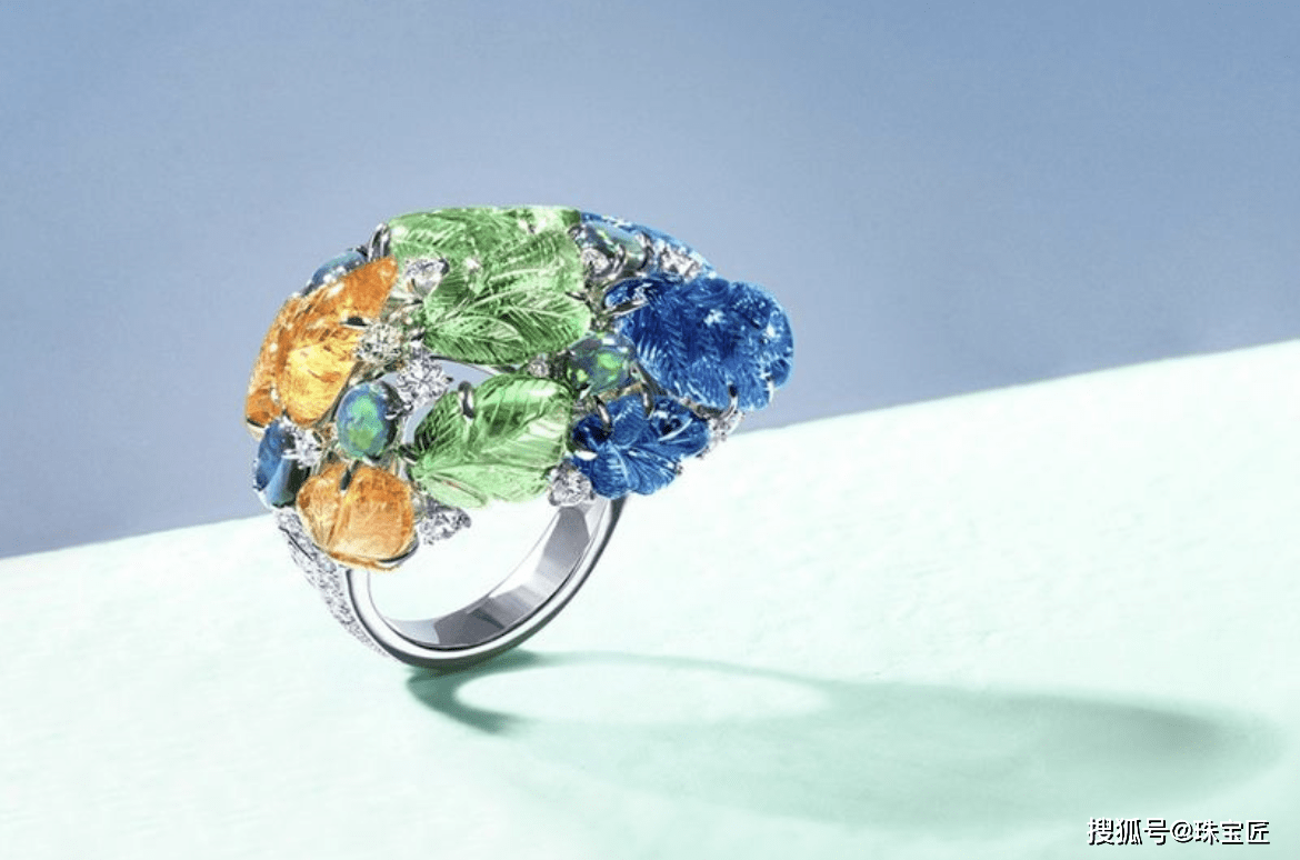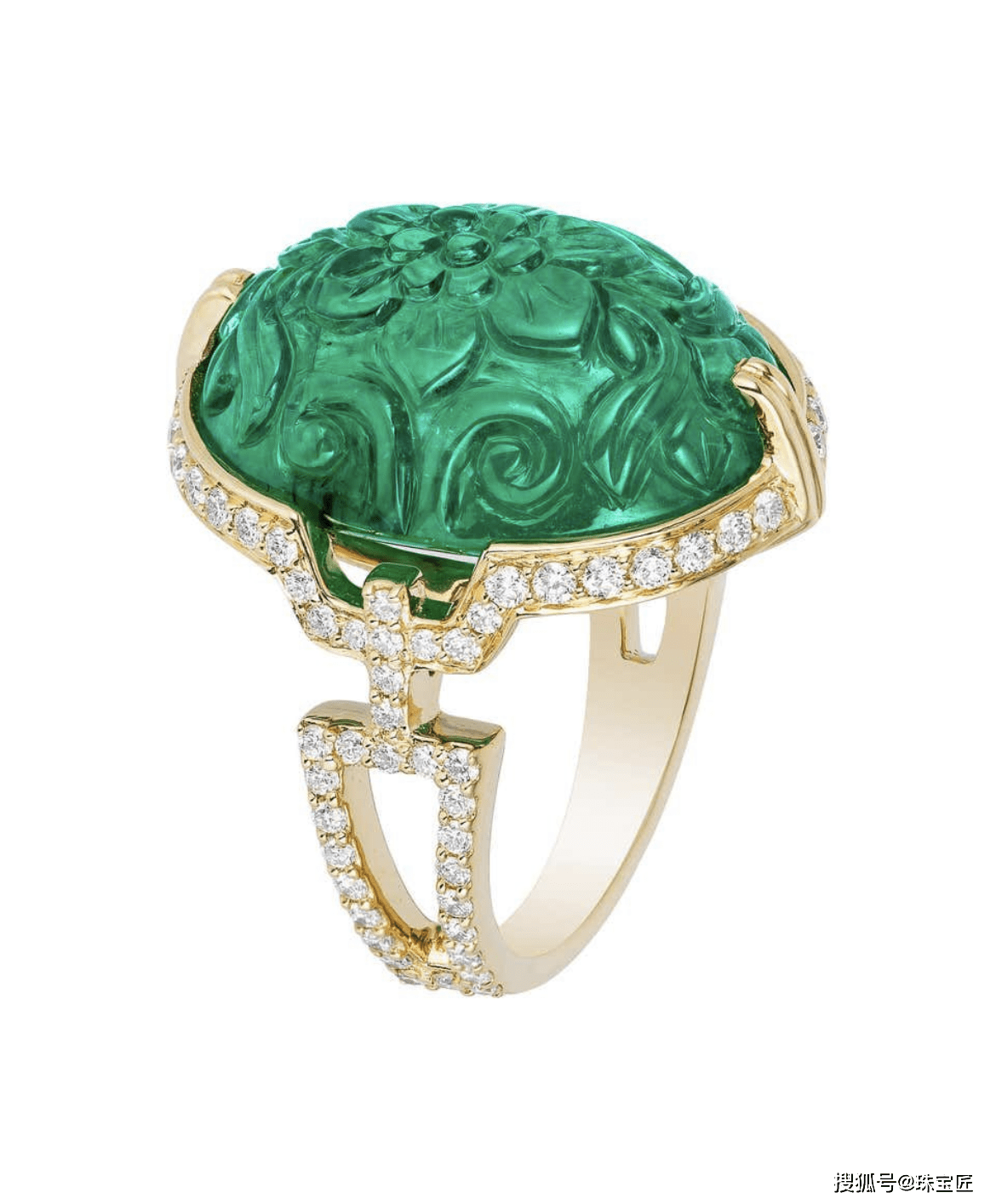 当然,大家对美的眼光是一致的,从装饰艺术风格至今,各个追赶潮流的品牌都有雕花宝石的相关作品,风格或撞色热烈,或清新典雅。