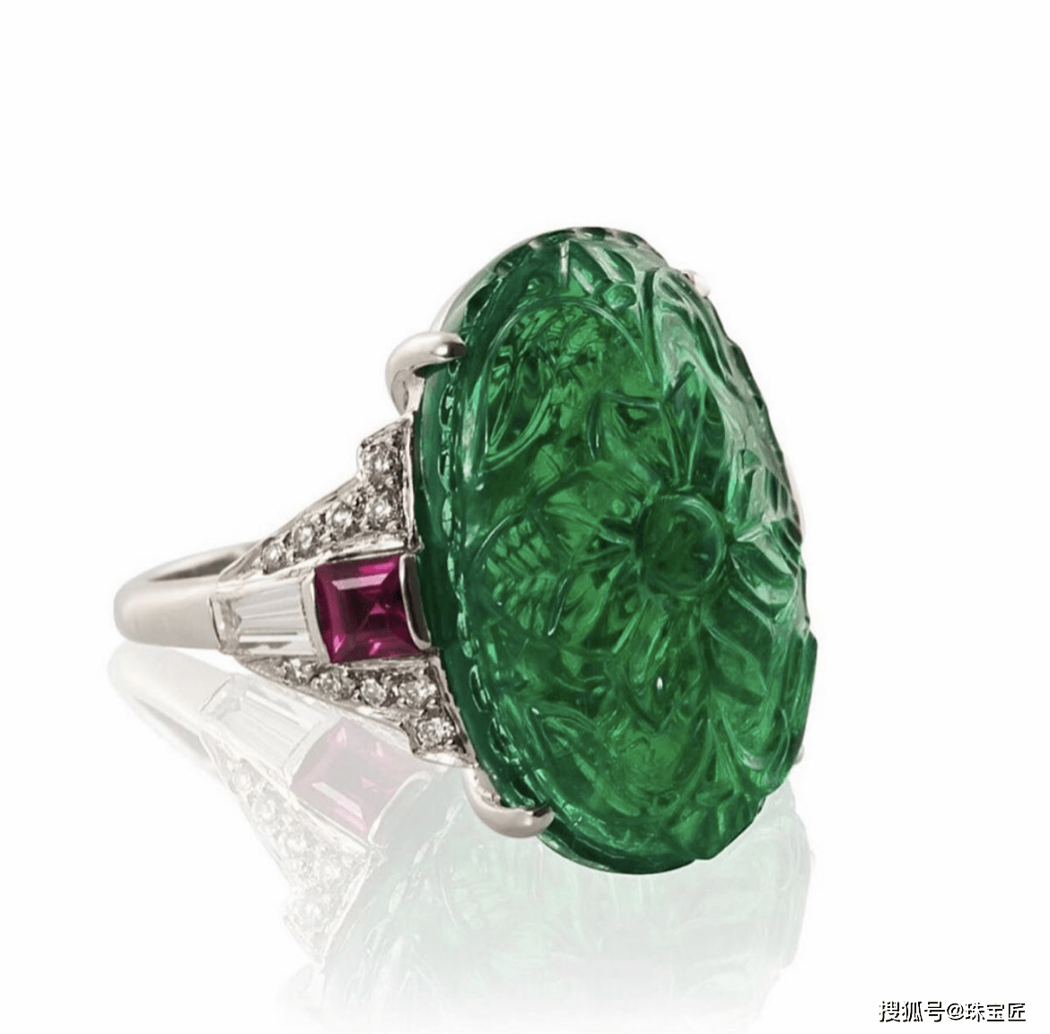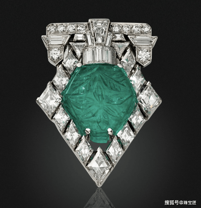 ![]() 雕花祖母绿胸针,by TIFFANY & CO | 图源:苏富比