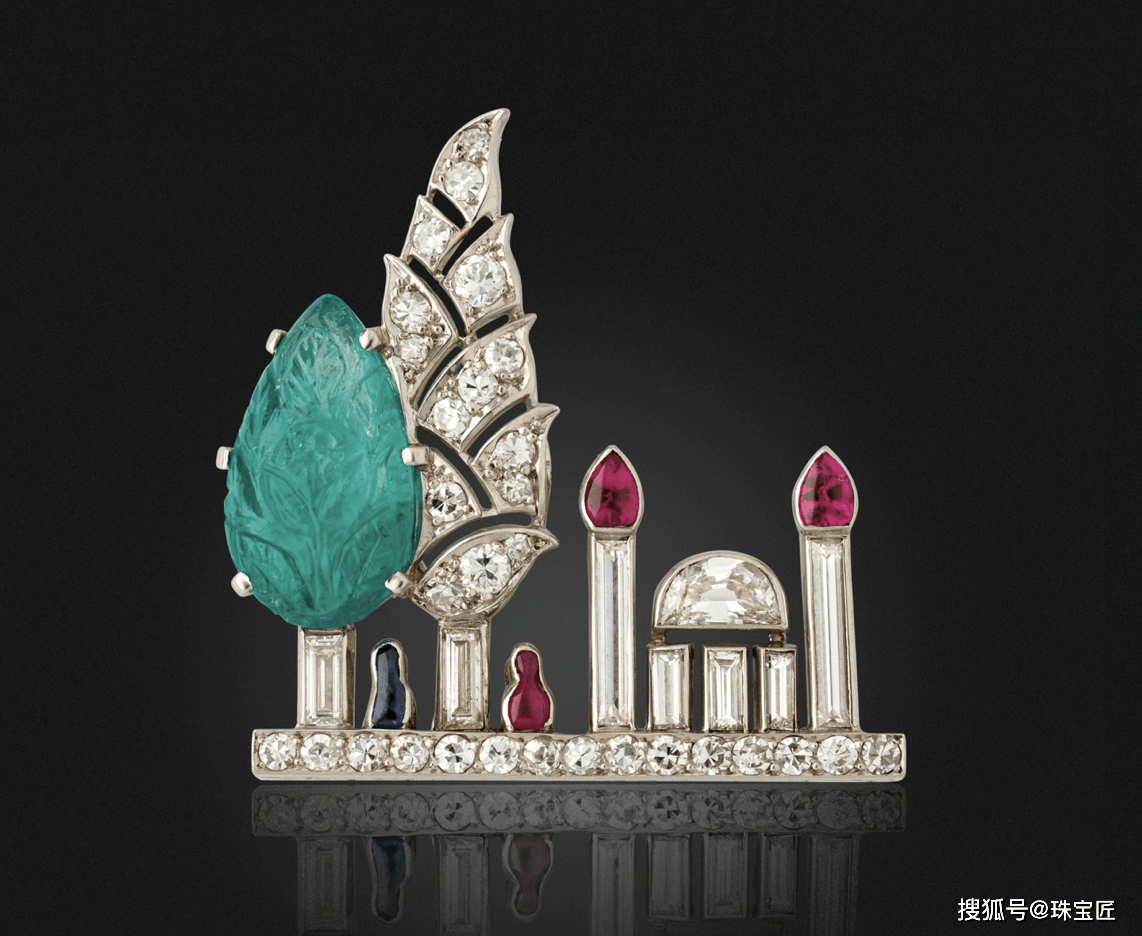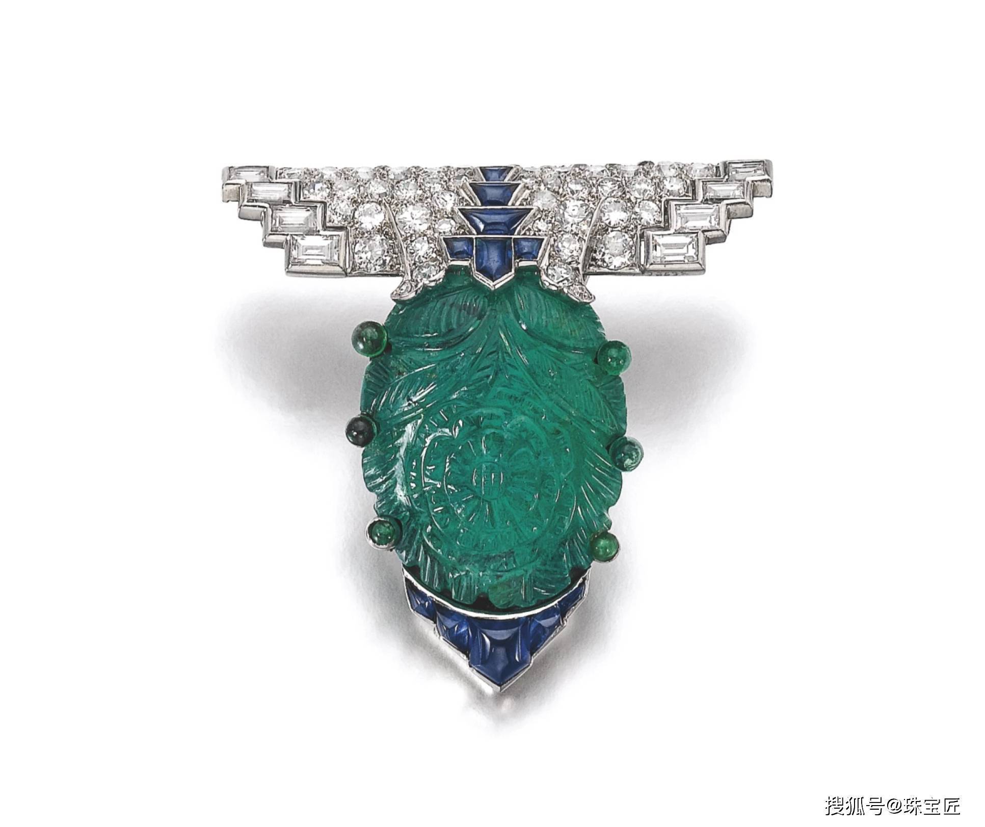 雕花祖母绿胸针,1929,by Mauboussin | 图源:苏富比
