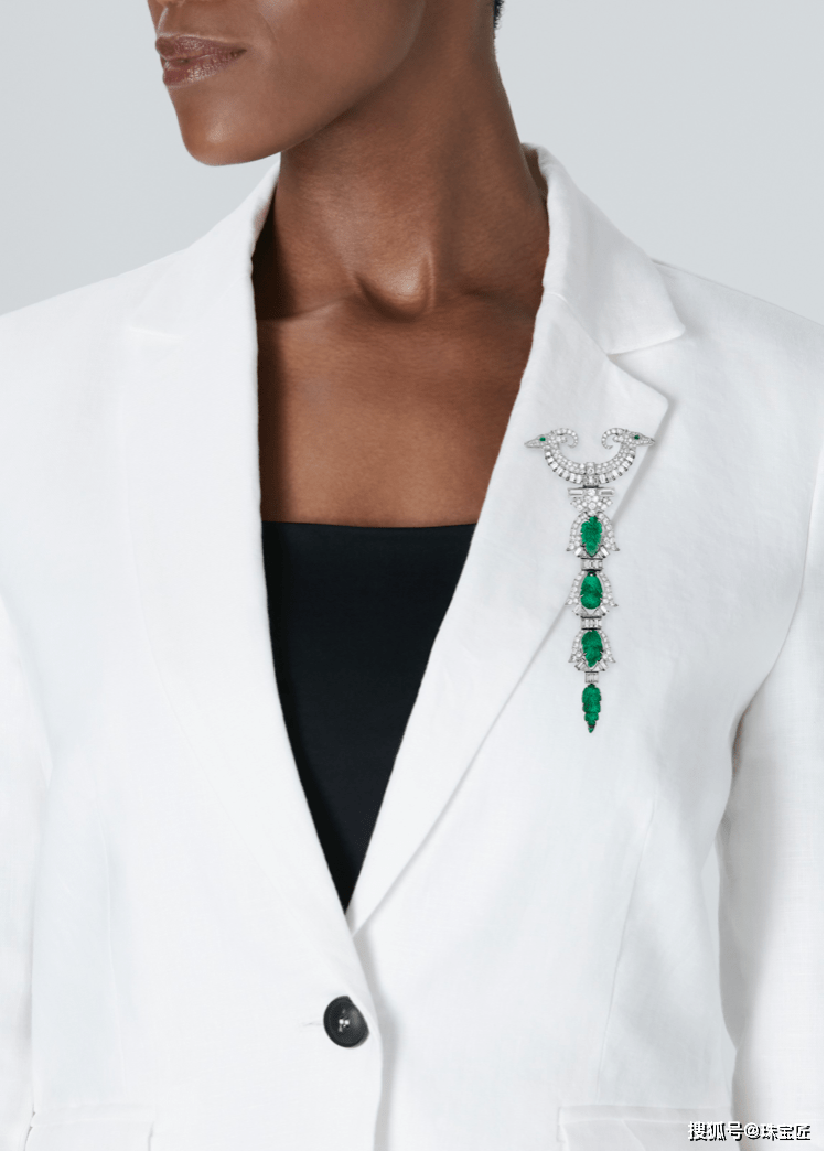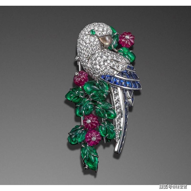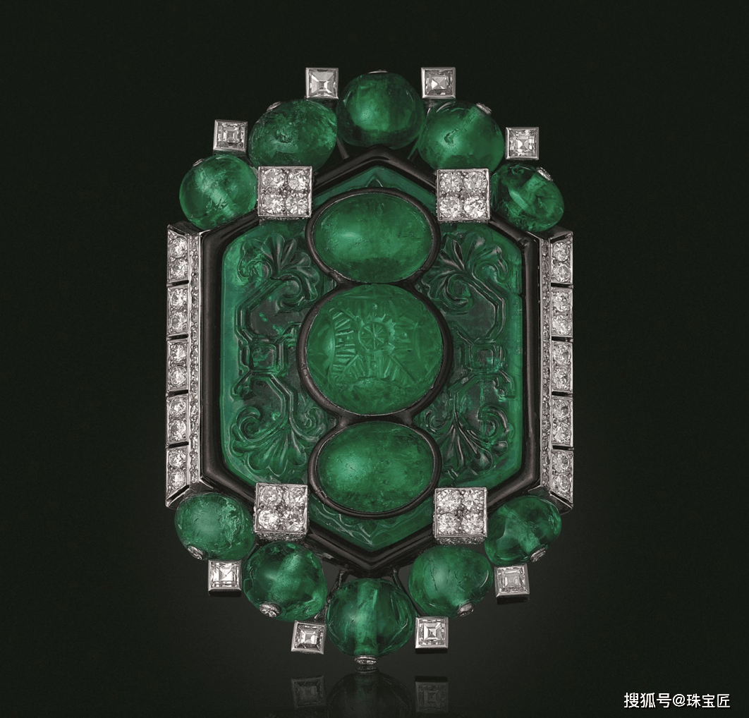 ![]() 雕花祖母绿胸针,1929,by Mauboussin | 图源:苏富比