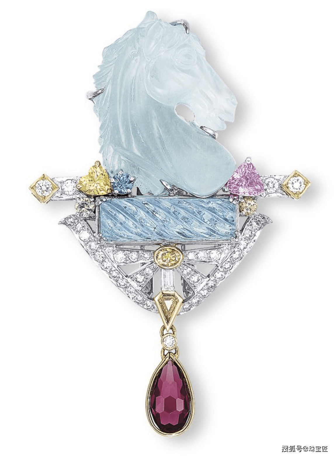 ![]() 海蓝宝石骏马胸针,by MITSUO KAJI | 图源:佳士得