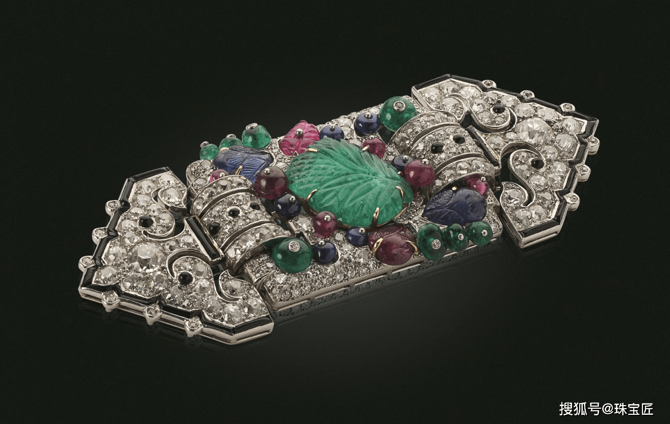 ![]() 雕花祖母绿胸针,最大那颗380.98ct,by CARTIER | 图源:苏富比