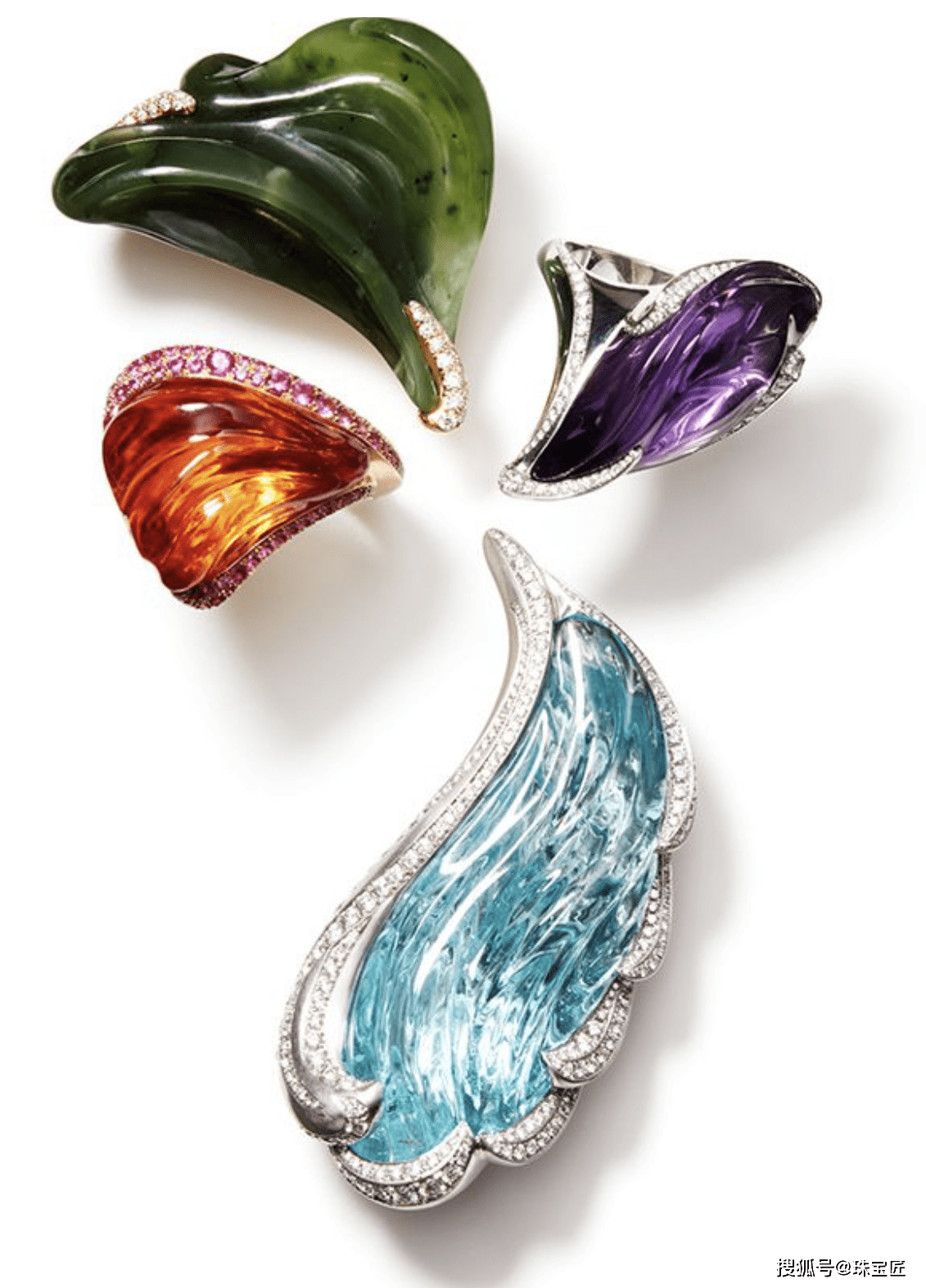 除了传统的雕刻叶片花朵,还可以用宝石凝固光影。