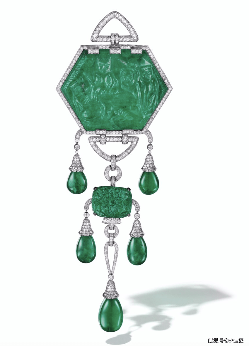 雕花祖母绿胸针,最大那颗380.98ct,by CARTIER | 图源:苏富比