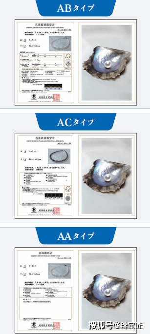 特定证书是指真科研与商家/企业/品牌合作的商业证书,类型有AB、AC、AA三种,分别对应不同珍珠品质。