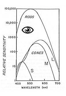 而观察者视网膜上接收彩色画面的红、绿、蓝三色视锥细胞的数量并不均等,绿色的视锥细胞最多,红色次之,所以人眼对于绿光的敏感度大于红光。
