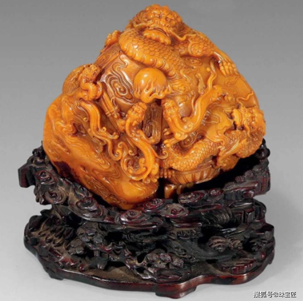 19世纪 田黄石雕苍龙教子山子,图源:雅昌拍卖
