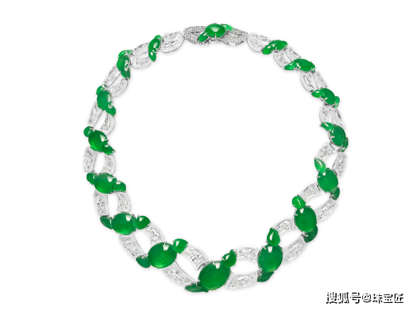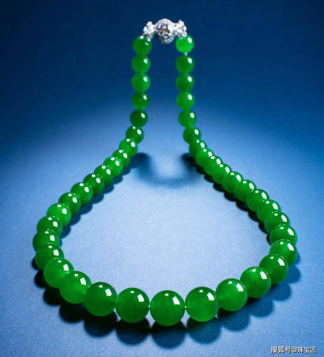 【Top 5:天然 帝王绿 翡翠珠配钻石及红宝石项链】