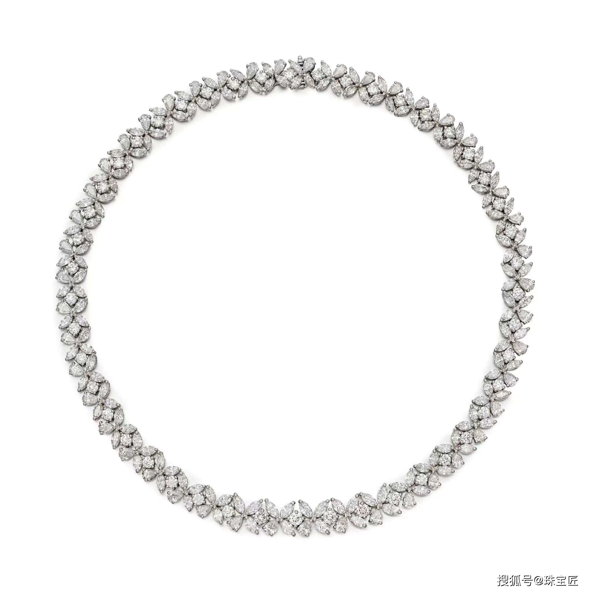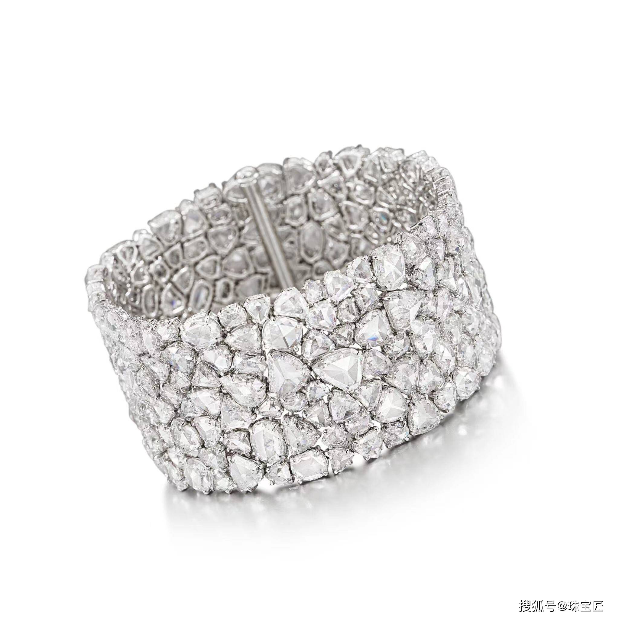 铂金镶嵌各种形状的玫瑰型切割钻石,长度约170毫米;