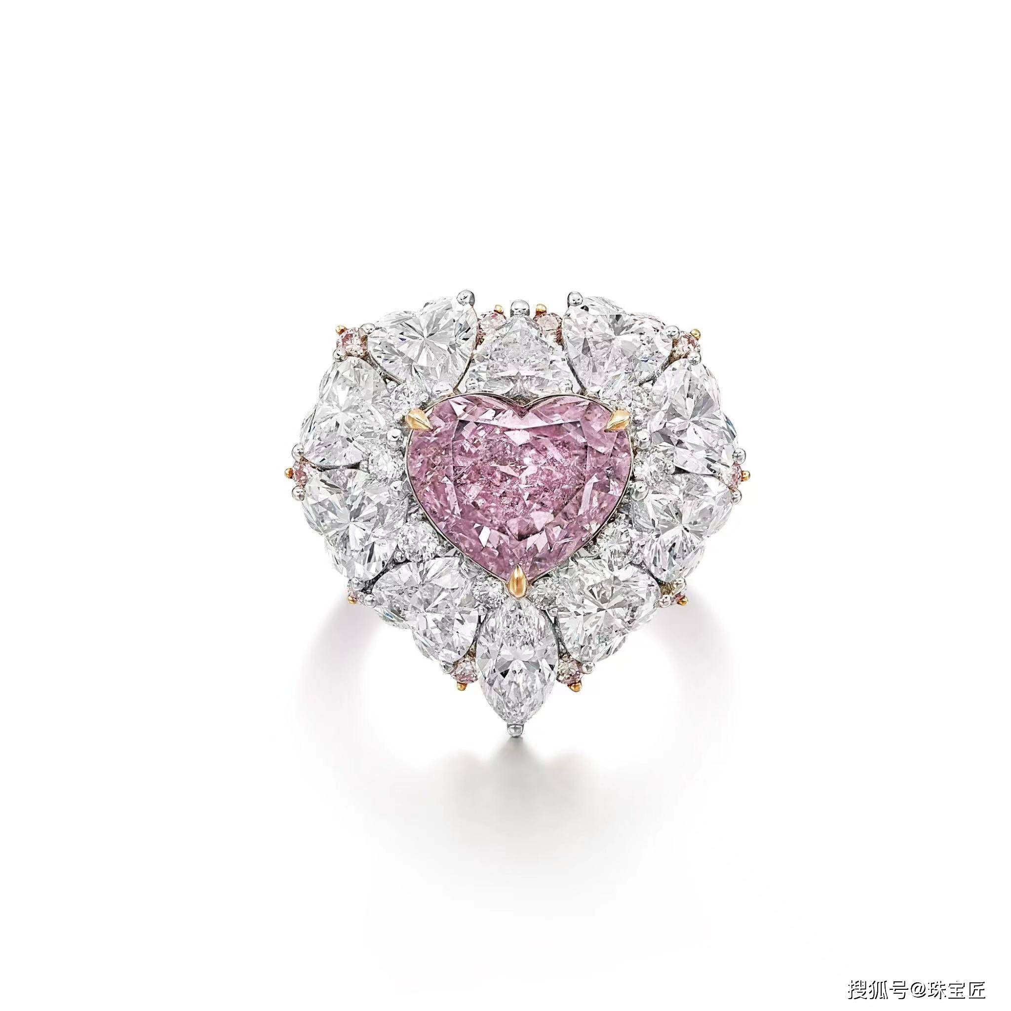 在众多钻石类拍品中,成交价名列前茅的是一枚3.04克拉浓彩粉红紫色钻石配钻石戒指。