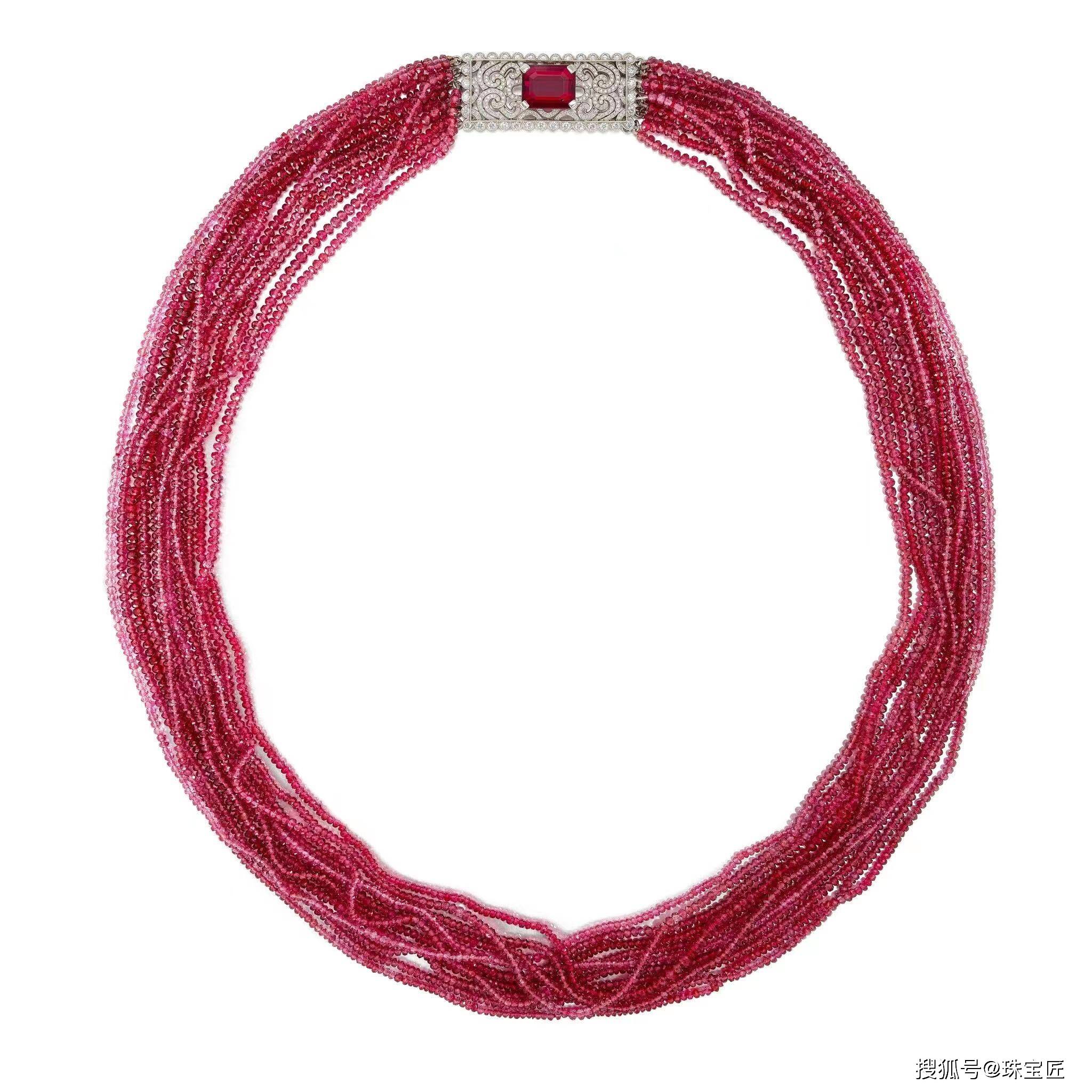 镶有红碧玺珠子的多股项链,长度约630毫米,署名蒂芙尼公司;