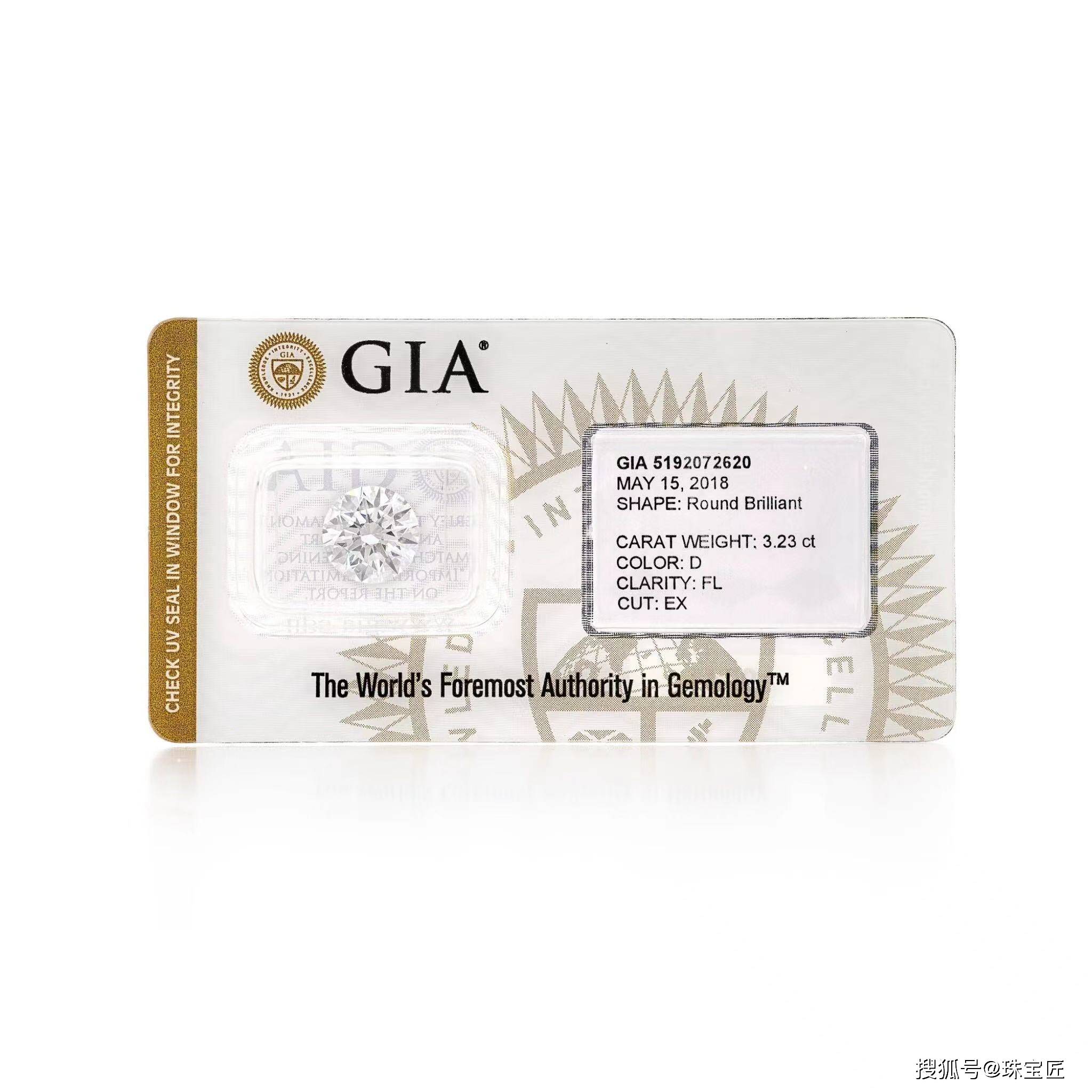 重达3.23克拉的明亮式切割钻石,随附GIA报告;
