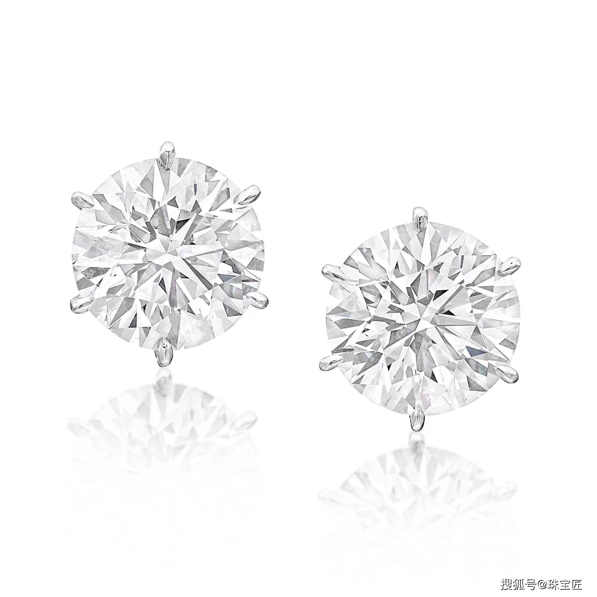 每颗钻石分别重4.09克拉和4.02克拉,镶嵌在14k白金上;