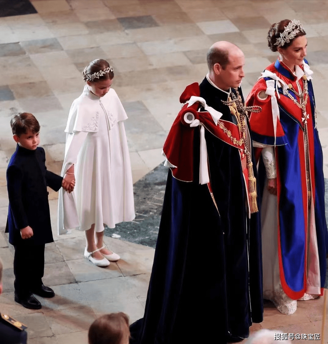 当然,整场加冕典礼中,最受瞩目的英国王室成员,还要属威廉凯特夫妇一家。