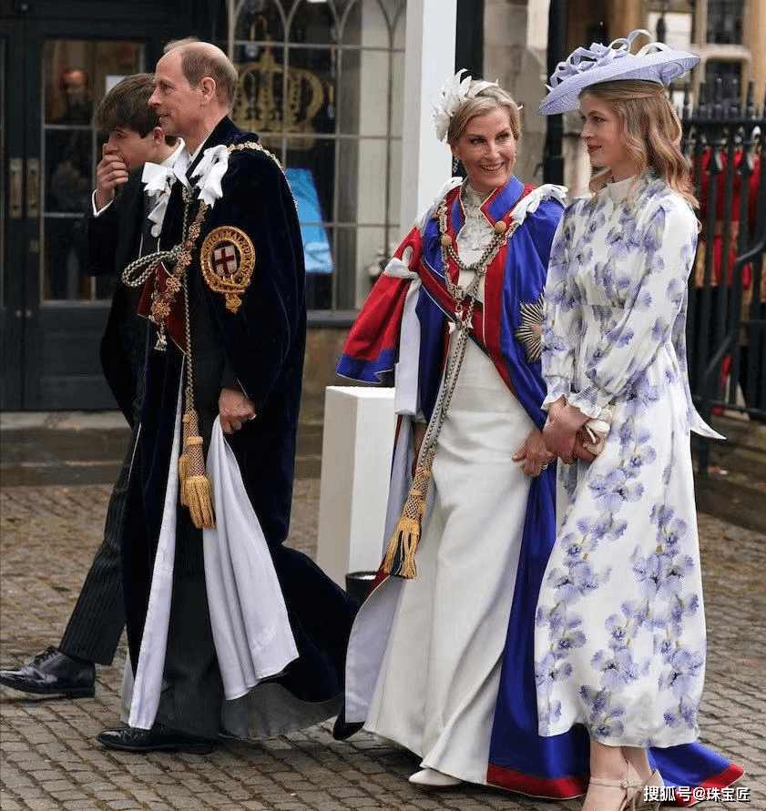 爱丁堡公爵爱德华王子作为查尔斯国王的弟弟,他与夫人索菲·里斯-琼斯也是身披礼袍,隆重亮相加冕典礼。