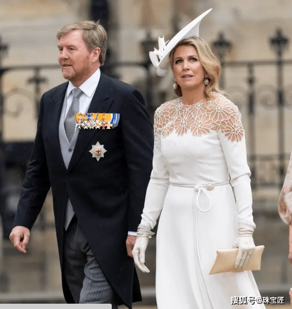 荷兰王后玛克西玛一身Jan Taminiau白色蕾丝边连衣裙惊艳亮相,搭配闪耀夺目的钻石珍珠耳环,霸气大女主气场瞬间显现!
