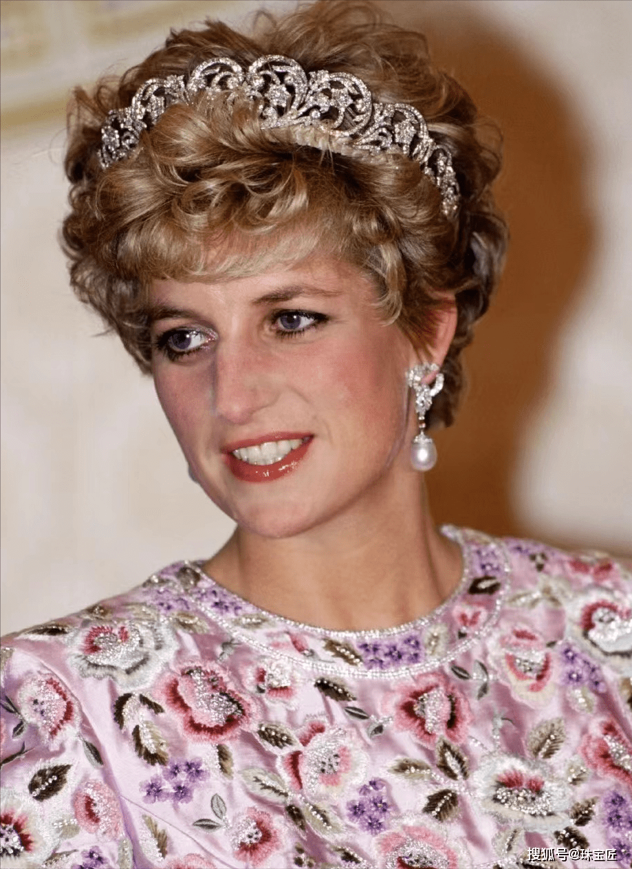 耳钉的顶部是马蹄形设计,由阶梯形和榄尖形的钻石镶嵌而成,耳坠最早是一颗温和圆润的南洋珍珠,戴安娜王妃曾多次佩戴它在各种重要场合亮相,它也因此成为了戴安娜王妃的标志。