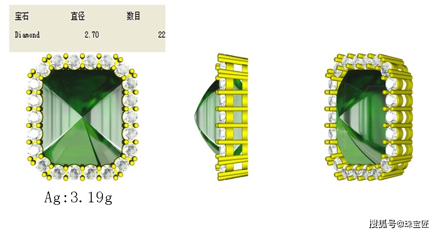 答:因为3D图只是为了铸造金模,宝石是电脑模拟的效果,要在金模做好后手工镶嵌上去,再弯折镶爪固定宝石。