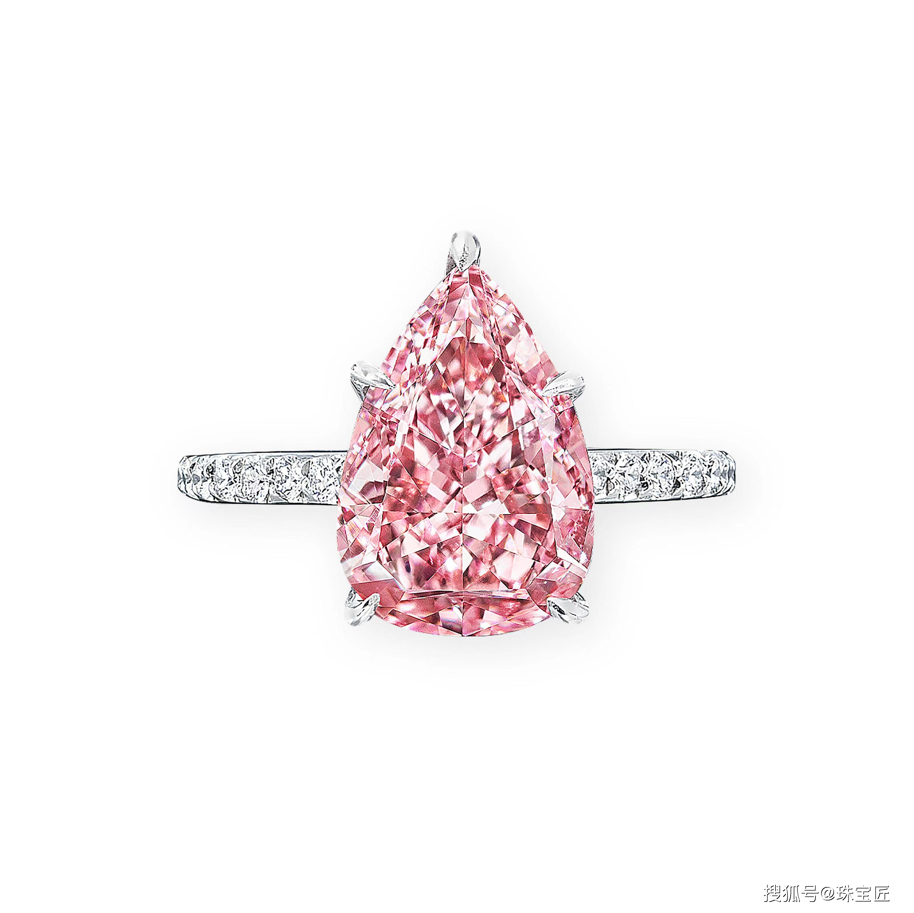 钻石类拍品成交价排名第三的是一枚4.08克拉梨形浓彩粉红色IF钻石戒指。