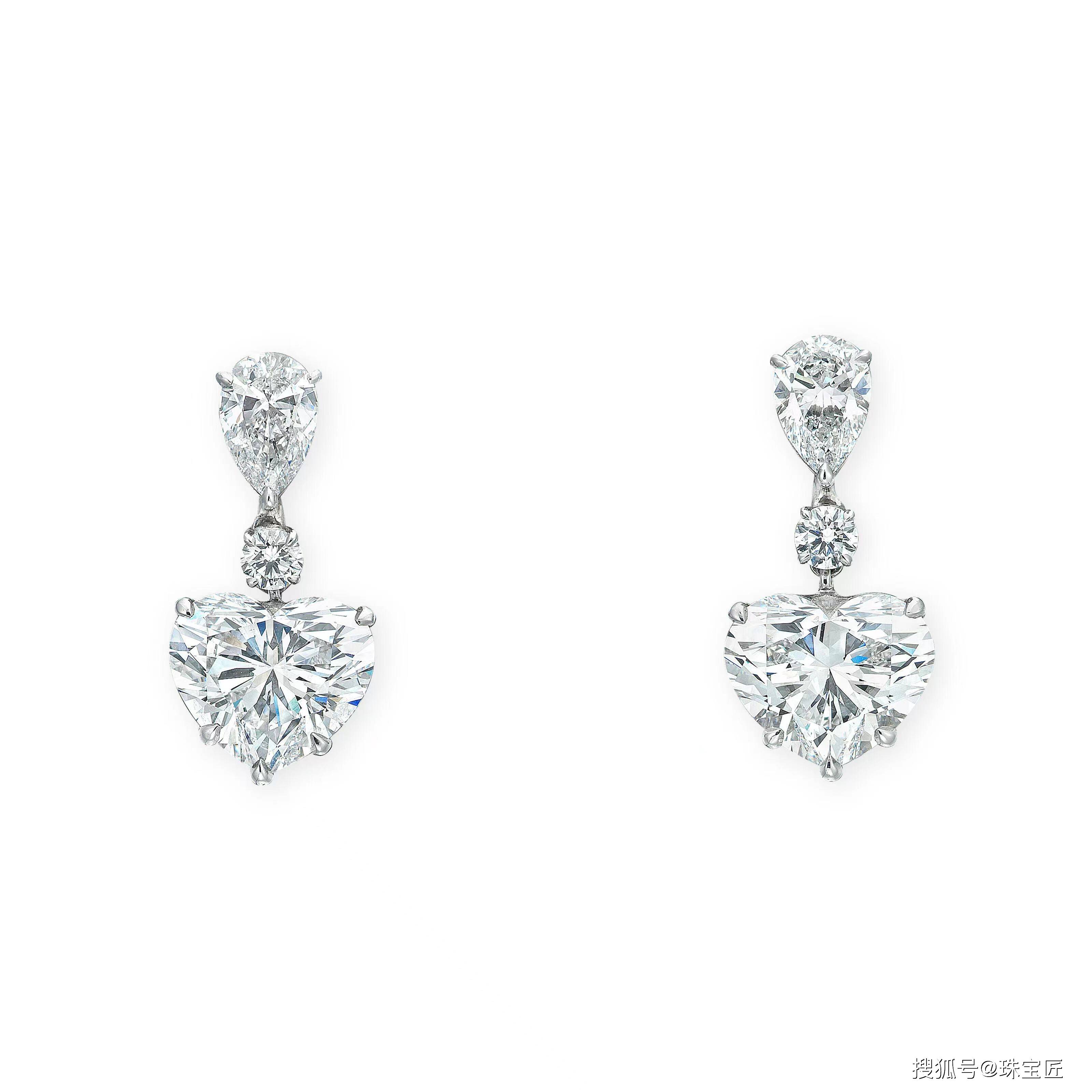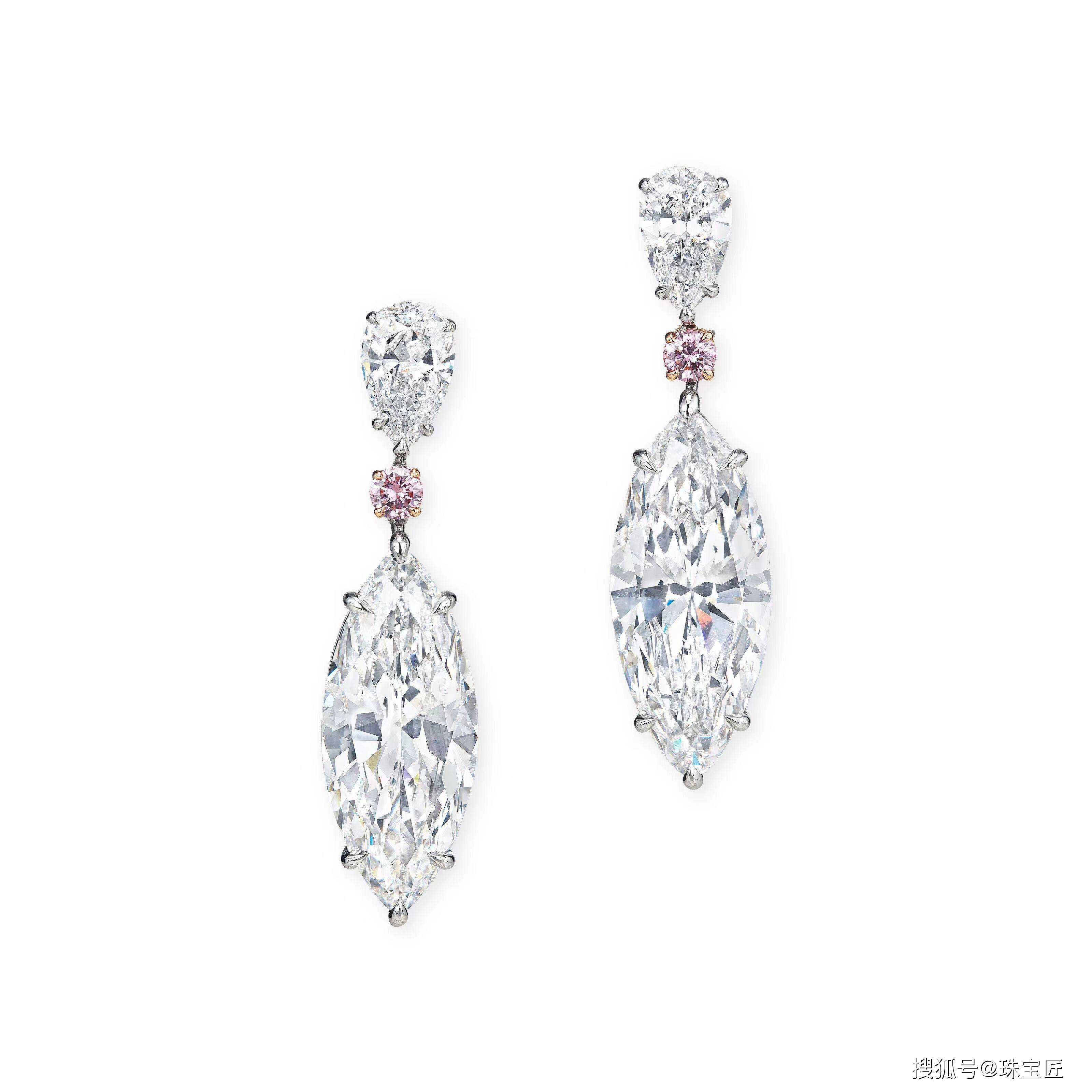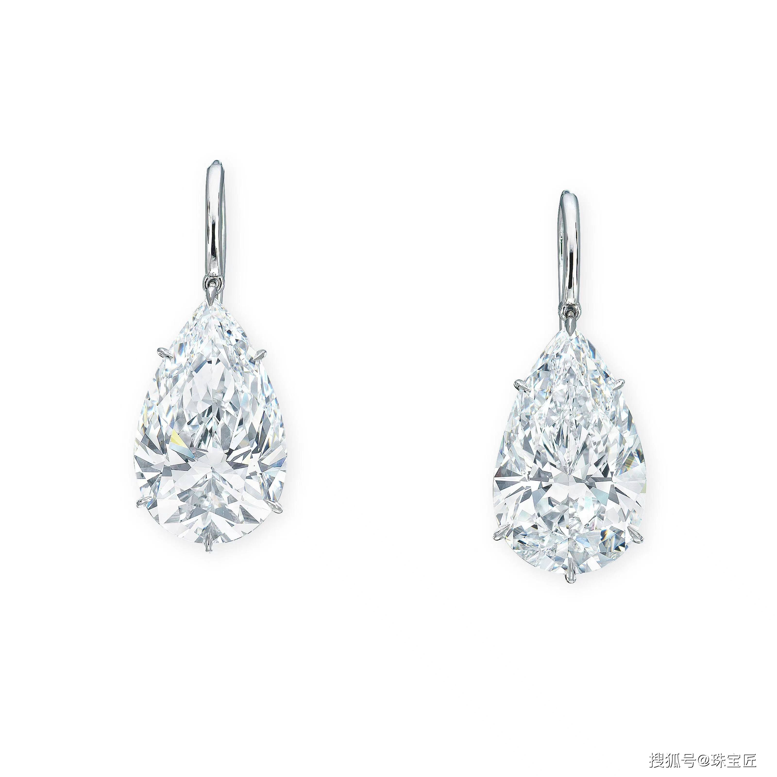 钻石耳环是由15.73克拉和15.23克拉的梨形D色 FL-IF Type lla钻石镶嵌而成,耳环长度为3.7厘米,附GIA证书;
