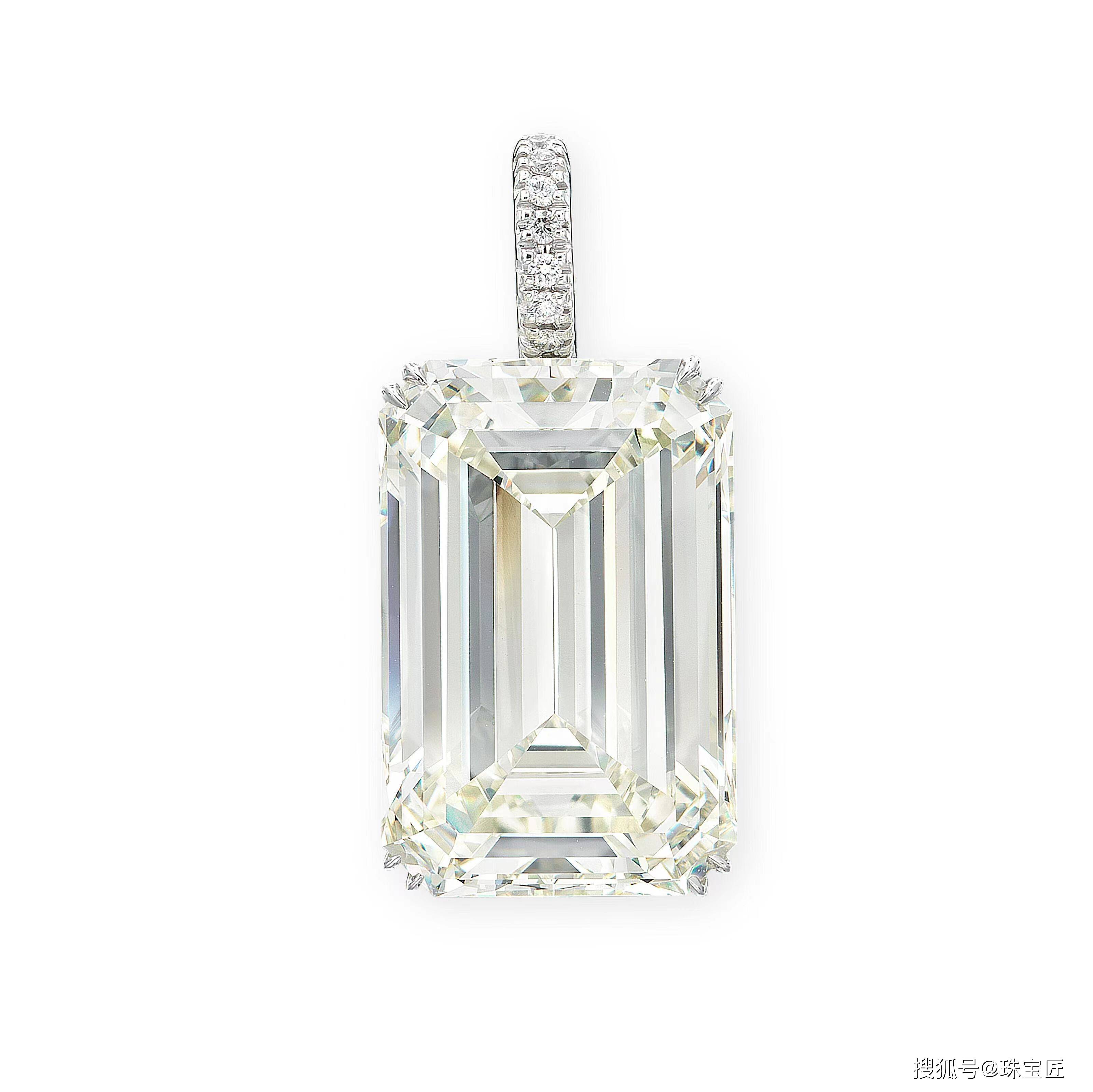 钻石吊坠,主石是一枚26.76克拉长方形M/VVS1钻石,吊坠长3.1cm,附GIA证书;
