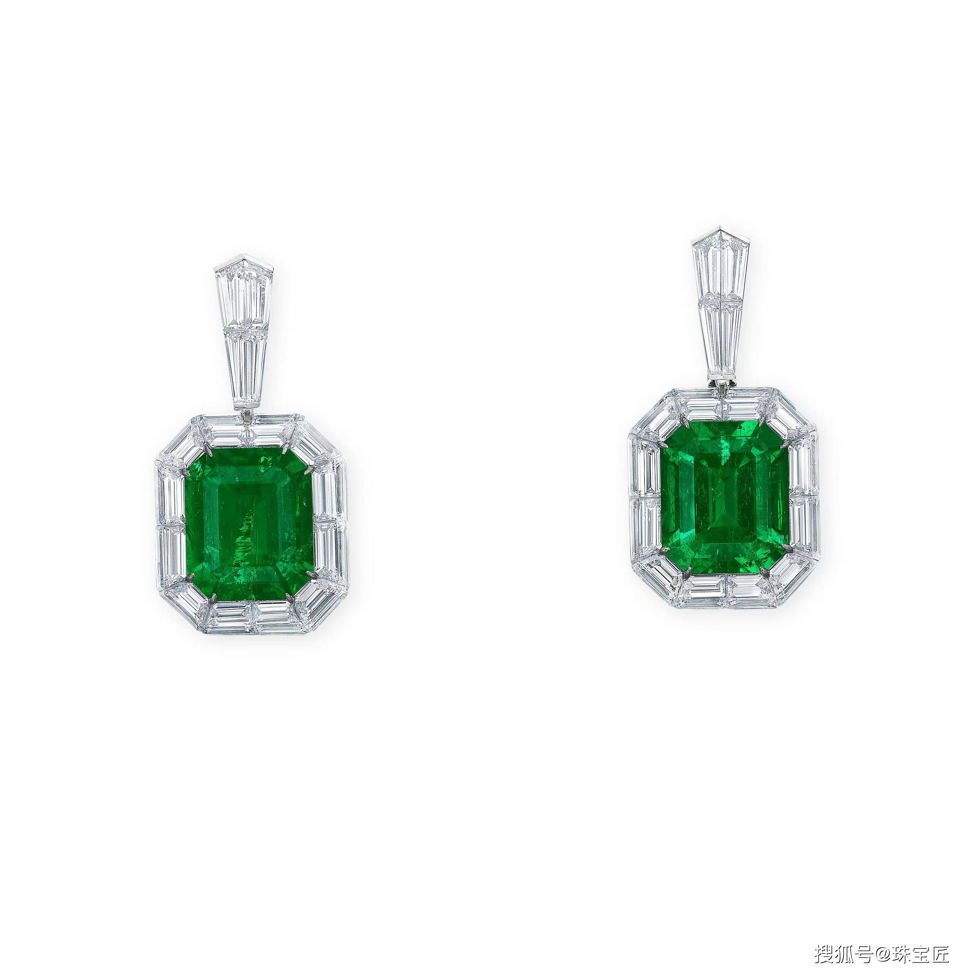 Forms设计,主石是5.57克拉及4.97克拉哥伦比亚祖母绿,四周配以钻石作为点缀,附SSEF及古柏林证书;