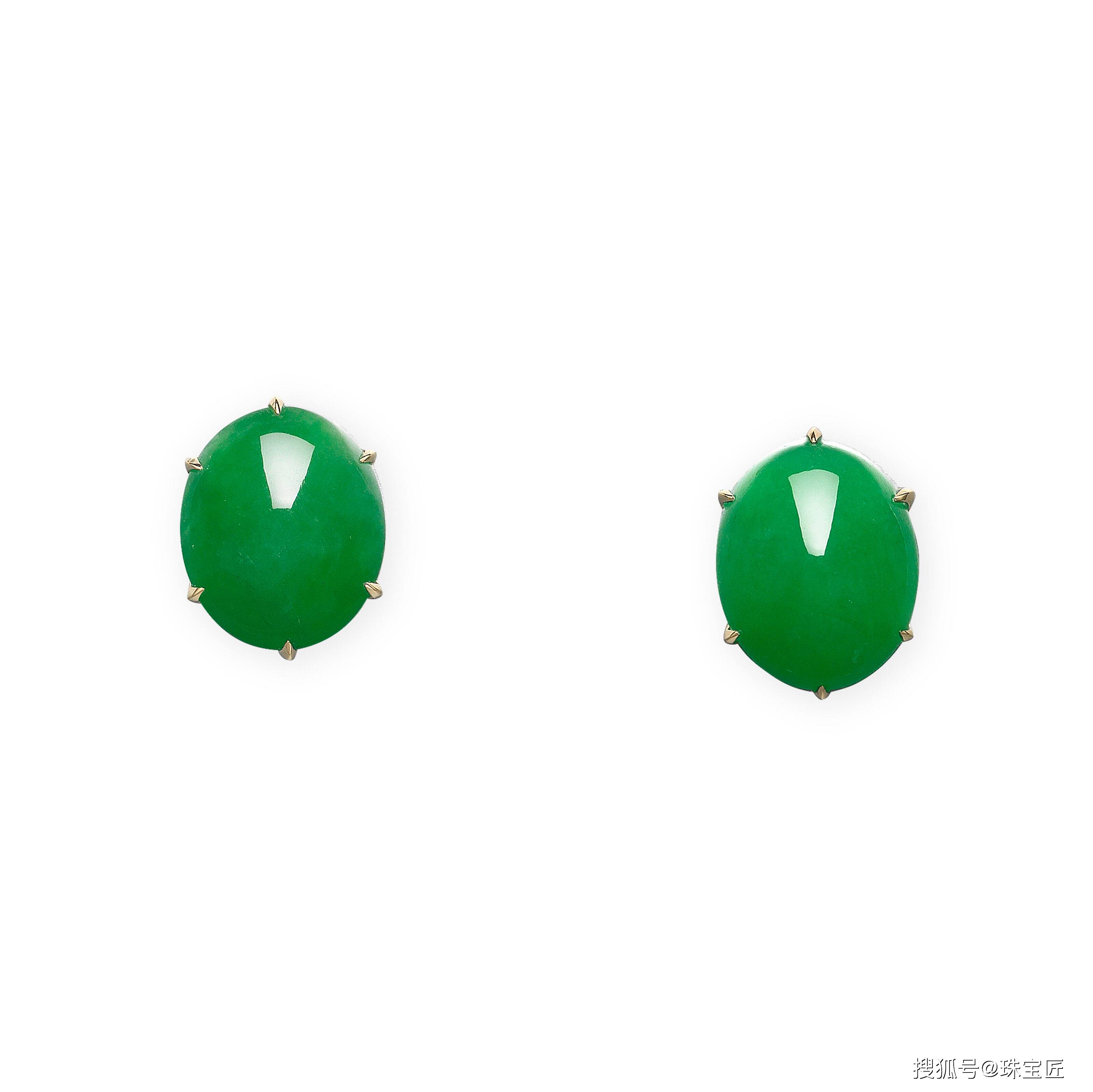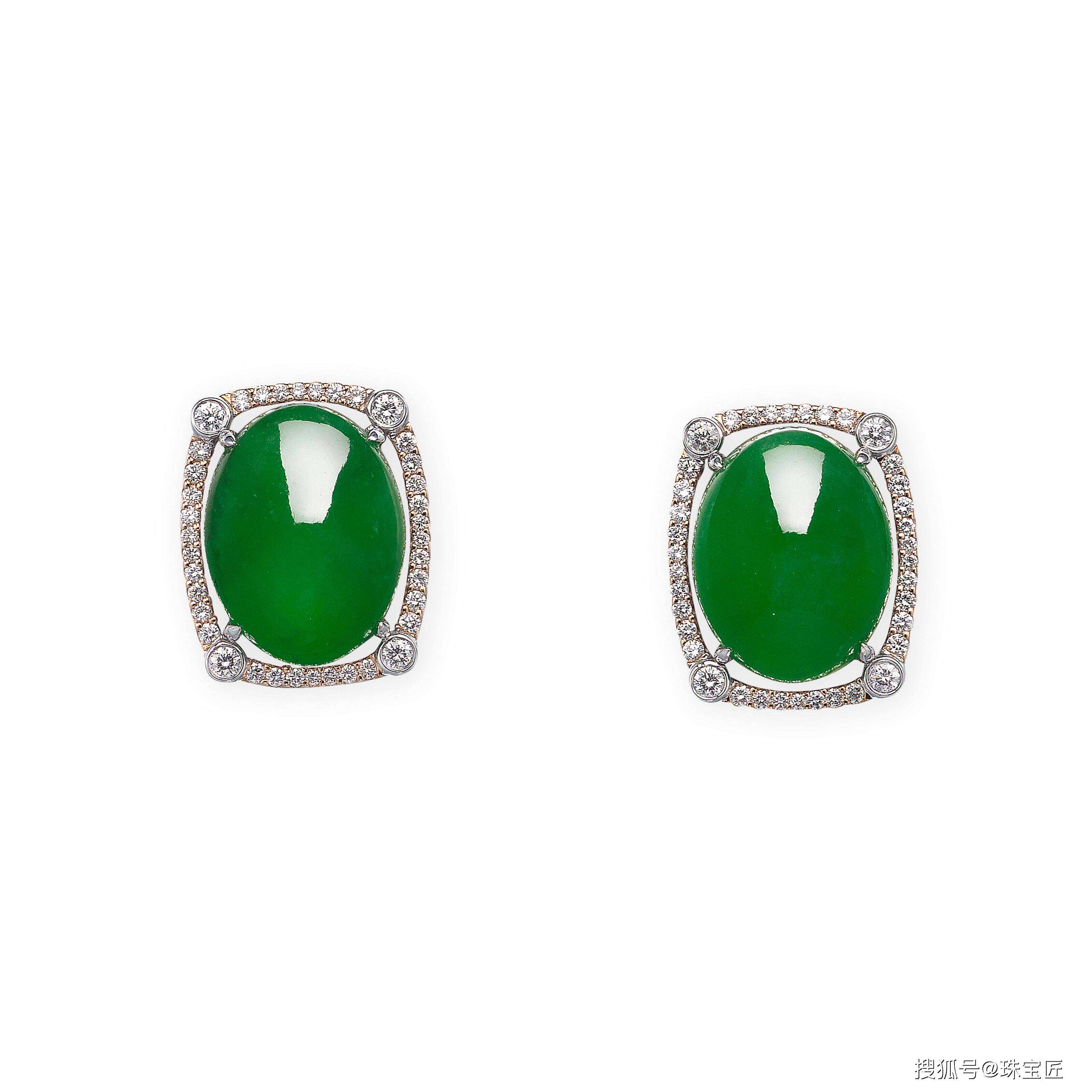翡翠及钻石耳环,最大蛋面为19.8*15.1*7mm,配以钻石作为点缀;